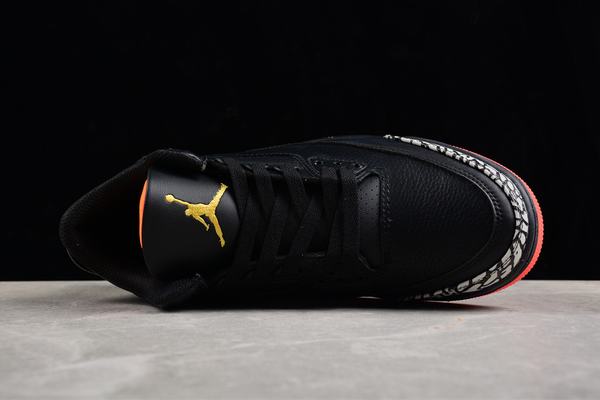 J Balvin x Air Jordan 3 Black Medellin Sunset The entire pair of shoes is mainly black. The body of the shoe is wrapped in delicate pebbled leather. It is not as eye-catching as the previous two joint brands. The incisions in the upper leather are specially filled with black, presenting colorful gradient tones. Inject eye-catching vitality and recognition. The Jumpman Logo on the cheap jordans for sale black tongue is embellished with Air and JBalvin’s lightning smiley logo. A large area of black lychee leather is embellished, and there is a rainbow gradient design on the heel. It should be said that the appearance level is really high. In terms of details, the Jumpman Logo on the heel of the right foot is changed to JBalvin's "Lightning Smiley", and the "I" of "AIR" on the left foot is changed to a lightning pattern to highlight the identity of the joint shoe. Finally, the orange outsole completes the design of the entire shoe. On the right heel, Jumpman's logo has been changed to J Balvin's "Lightning Smiley", and the "I" of "AIR" has been changed to a lightning pattern, and the details are also very stylish. At the end of the translucent crystal outsole, pay attention to the problem of oxidation.