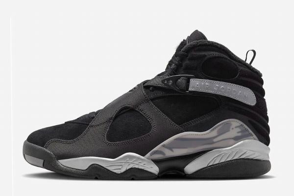 The new Air Jordan 8 Winterized "Gunsmoke" is a fresh addition to the Jordan Brand's Winterized collection, designed to combat the colder months. This Air Jordan 8 comes in a glossy black, Gunsmoke, and metallic silver color palette with a complete three-black design. Its standout features include a waterproof frosted material, an enhanced collar lining for added warmth, and a reflective strip that is stylish and safe. Don't miss the iconic carpet-like tongue patch and striking graphic fender that give this shoe its unique flair. In addition, it comes in an exclusive packaging that adds an extra layer of excitement.