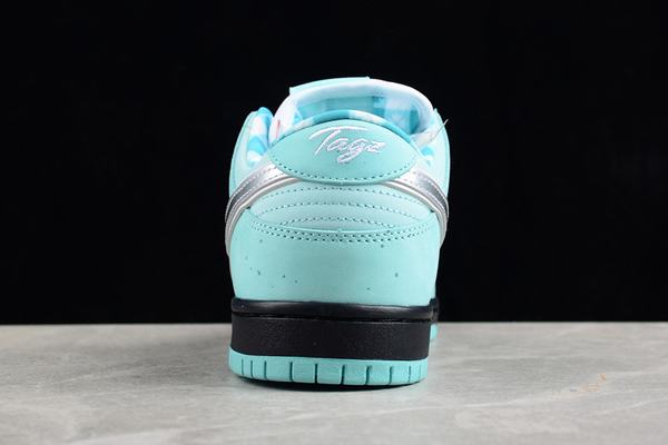 Custom designer tagzfootwear brought in a pair of overexpensive-looking "lobsters" called Dunk SB. The upper has been changed to a very recognizable blue, and the inner lining is also in the same color. The toe position retains the classic binding design elements of the lobster series. Another eye-catching change is that the Swoosh is presented in metallic silver, giving the shoes a more luxurious look. For this purpose, a blue shoebox was specially customized to keep in line with the packaging of jewelry. The heel embroidery shows that this pair of "lobsters" was created by tagzfootwear, a sneaker customiser. The props used for the shoot also fit the theme very well. In terms of design, this double name chooses SB Dunk as the prototype, through the classic blue as the main color, and with white decoration, the overall is very fresh temperament. Both sides of the upper and tongue are made of mesh, which combines with blue suede and white leather on the toe to give a different texture.