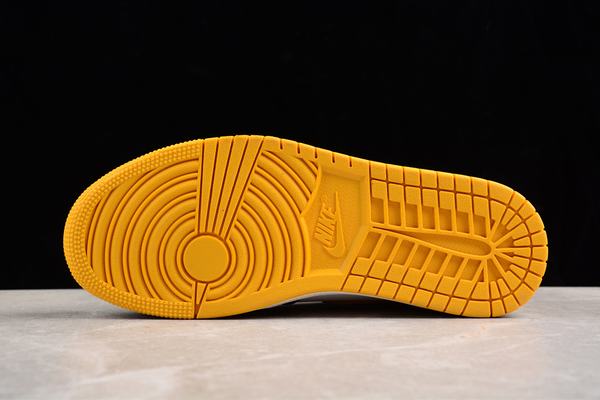 Air Jordan 1 Retro High OG Yellow Toe shoes use the classic black and white color to create the upper, the heel and the toe part of the bright yellow stand out, for the shoes to create a new visual effect. The Swoosh on the side of the shoe and the flying wing Logo are made of black to make the cheap jordan shoes more layered. The tongue and lining are made of black, with a yellow Logo dotted on the tongue. At the same time, the use of excellent texture lychee skin as fabric, OG retro temperament overflow, classic black toe color design, white shoe body as the main tone, frame and heel color is presented in black and yellow contrast, creating a very strong visual impact.