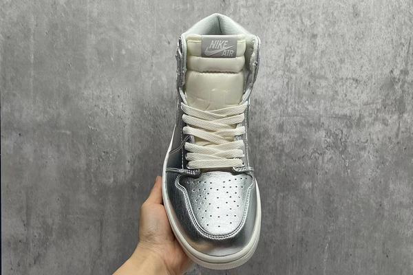 Air Jordan 1 High Metallic Silver adopts the classic Air Jordan 1 shoe shape with gray and liquid silver as the main colors, bringing a unique texture performance and good-looking appearance. The Swoosh Logo of the shoes is also embellished with tin foil color. Against the background of white leather, it is more conspicuous and successfully highlights the shoe brand. Air Jordan 1 Metallic Silver adds metallic texture and different leather textures to the upper material to create a unique texture. The entire pair of shoes is matched with silver gray, and a translucent rubber outsole is added to the sole part.