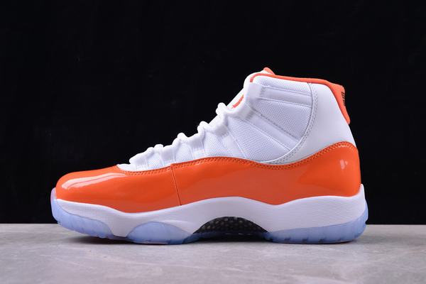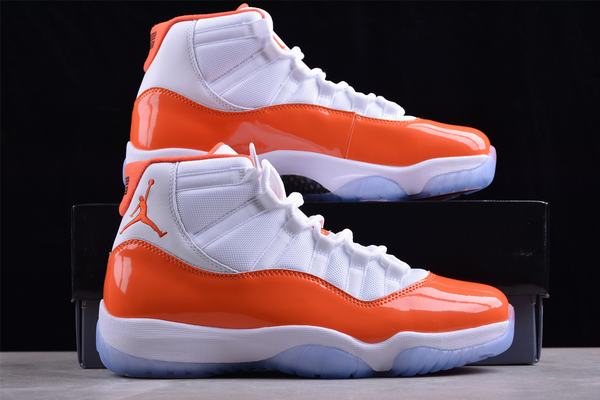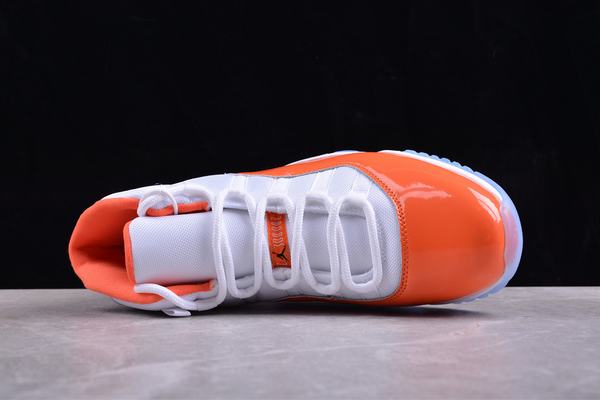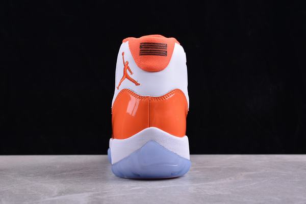 The Air Jordan 11 Florida Gators features a white nylon mesh upper with orange patent leather overlays and a Jumpman logo on the side of the collar. The logo is embellished with orange, the heel is embossed with black "two three", and the shoelace holes are also embellished with orange fonts to create a luxurious atmosphere. In addition, the sole also uses a white midsole with a translucent rubber outsole to complete the design.