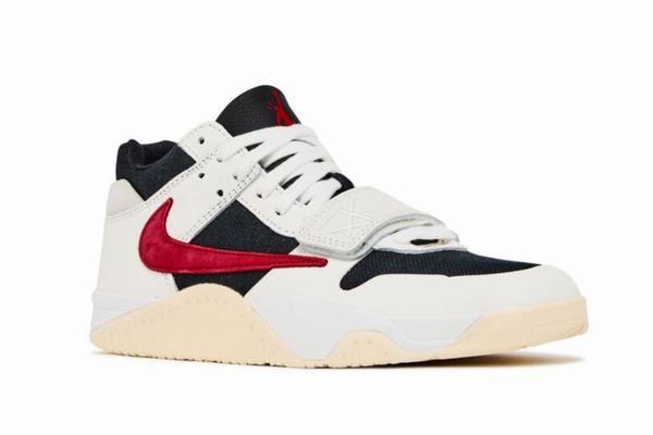 The Jordan Jumpman Jack TR “University Red” inspires Travis Scott’s debut signature sneaker, accentuated by a black canvas upper, an off-white midfoot strap, and tumbled leather overlays. A red Jumpman logo adorns the tongue, combining with a reverse suede logo on the lateral side. The Cactus Jack face logo is highlighted on the heel area, while an oversized "Jack" is etched in red, contrasting against the beige rubber outsole. Decked out in Sail, University Red, Black and Muslin tones, the shoe features vibrant University Red highlights on the Swooshes, the Jumpman logo on the tongue and the embroidered Cactus Jack face logo on the heel. A textile base, similar to the "Sail" pair, combines with leather overlays in black and white to maintain the sleek aesthetic. The signature midfoot strap, in white leather, complements the white midsole and tulle rubber outsole for style and durability. The Jumpman logo on the tongue, the Cactus Jack face logo on the heel and the Swooshes on the side are all embellished in vibrant University Red, which is then complemented by a vulcanized rubber outsole.