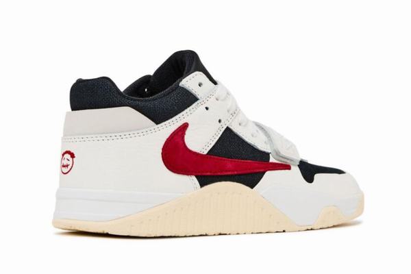 The Jordan Jumpman Jack TR “University Red” inspires Travis Scott’s debut signature sneaker, accentuated by a black canvas upper, an off-white midfoot strap, and tumbled leather overlays. A red Jumpman logo adorns the tongue, combining with a reverse suede logo on the lateral side. The Cactus Jack face logo is highlighted on the heel area, while an oversized "Jack" is etched in red, contrasting against the beige rubber outsole. Decked out in Sail, University Red, Black and Muslin tones, the shoe features vibrant University Red highlights on the Swooshes, the Jumpman logo on the tongue and the embroidered Cactus Jack face logo on the heel. A textile base, similar to the "Sail" pair, combines with leather overlays in black and white to maintain the sleek aesthetic. The signature midfoot strap, in white leather, complements the white midsole and tulle rubber outsole for style and durability. The Jumpman logo on the tongue, the Cactus Jack face logo on the heel and the Swooshes on the side are all embellished in vibrant University Red, which is then complemented by a vulcanized rubber outsole.