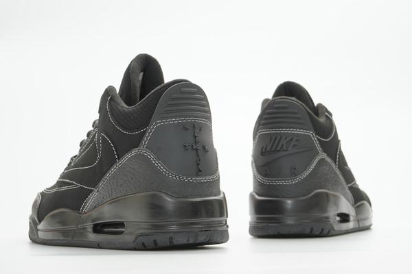 The Swoosh of the Travis Scott x Jordan 3 Black Cat color pattern takes on a hook style.