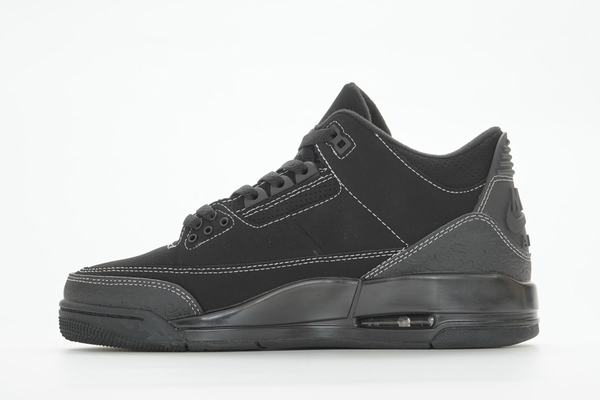 The Swoosh of the Travis Scott x Jordan 3 Black Cat color pattern takes on a hook style.