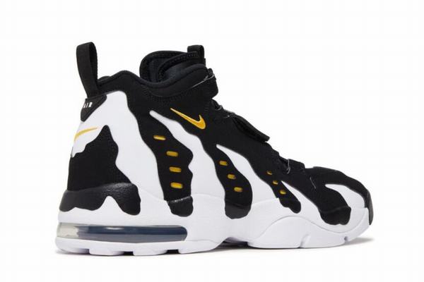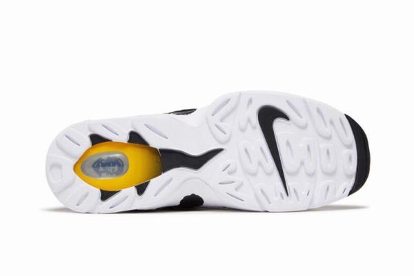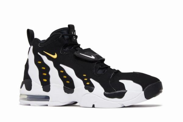 The 2024 Air Diamond Turf Max '96 'Black Varsity Maize' is a throwback from Deion Sanders. These shoes have an adjustable mid-foot strap, which ensures a white leather upper with a black scrub cover. Embroidered gold Swooshes dot various sections of the upper, while a mesh pull TAB on the back allows easy access. A full-length foam midsole package exposes the maximum air heel unit to the plush feel under the foot.
