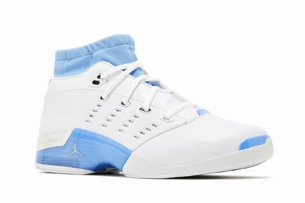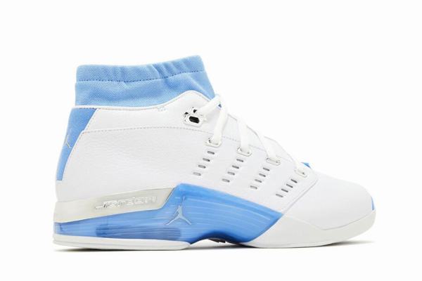 Air Jordan 17 Retro Low SP University Blue This shoe uses a classic translucent midsole frame, the heel loads a metal texture stability piece, cancels the AJ17 high top shoelace lock cover design, using Dynamic Fit dynamic socks instead. In terms of mid-bottom cushioning, this Air Jordan 17 Low and AJ17 are also purchased.