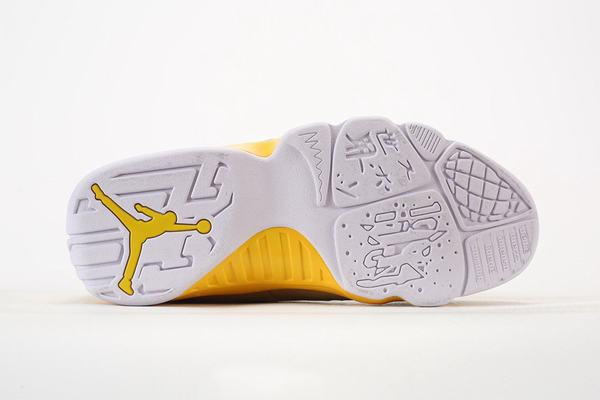 Retro Air Jordan 9 White Yellow Brown Upper material Foam midsole with heel Visual air cushioning setup Embedded air cushioning added to the forefoot Thick and wear-resistant rubber outsole The stitching information on the upper, the glossy midsole and the patent leather finish give the shoe a striking look. The traditional color design that never finishes in Jordan shoes is presented again.