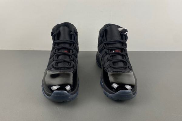 The Air Jordan 11 Black Blue Red uses a black nylon mesh upper with a black shiny leather cover, showing a great general layout; the heel still uses the traditional "2 3" and is embellished with red, and the jumpaman logo on the side of the heel is presented in metal silver, which has an easy and honorable temperament; the shoelace openings are supplemented with black needlework and white jumpman logo needlework, producing a lavish environment, and finally the black midsole, transparent crystal outsole and black jumpman logo finish the general design.