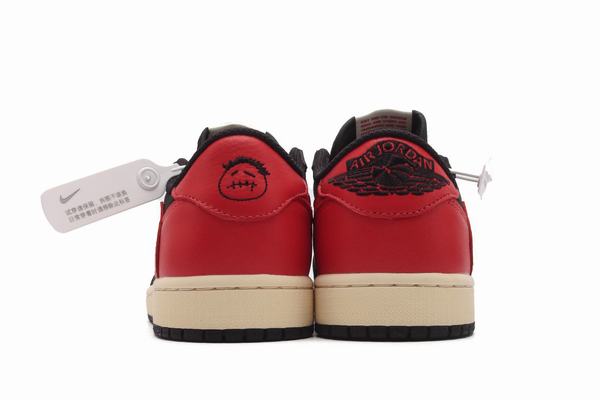The Travis Scott x Air Jordan 1 Low OG adopts the classic black and red color scheme as a whole, with a black leather upper and red details, creating a classic and fashionable feeling. The iconic Swoosh logo on the side is presented in white, which contrasts sharply with the rest of the shoe body, increasing the visual impact. In addition, Travis Scott's personal brand logo Cactus Jack is printed on the tongue, highlighting his unique identity symbol.