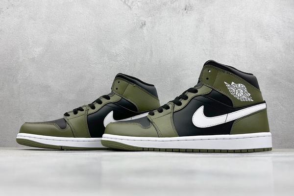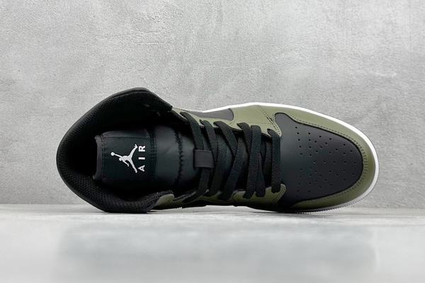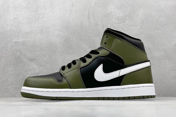 This Air Jordan 1 Mid sneaker is known for its unique color scheme, with an impressive combination of army green, black and white. The upper is made of high-quality leather with a delicate texture, paired with the classic Jordan iconic Swoosh design, showing a strong brand feature. In addition, the shoe also features a mid-top design, which provides good ankle support while maintaining a stylish appearance.