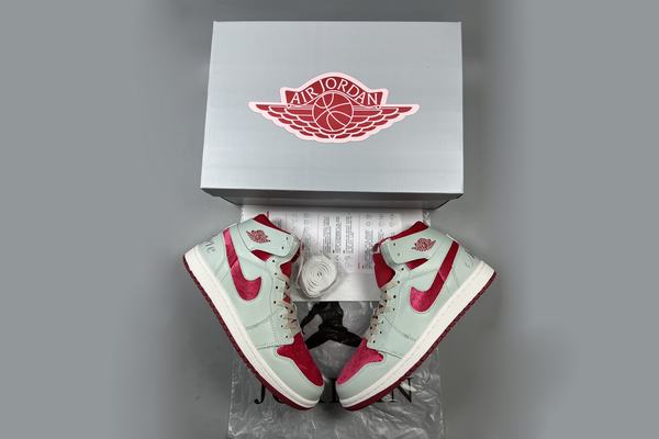This pair of Air Jordan 1 Zoom CMFT 2 Valentines Day is an unique version designed for Valentine's Day. It is mostly light green with bright red decorations, and the entire is full of a solid sweet atmosphere of love. The shoe body is wrapped in lychee natural leather and red velour material, and the heel is stitched with words "atime awhere" (whenever and wherever), which is full of Valentine's Day ambience.