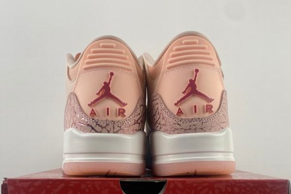 Air Jordan 3 WMNS Valentines Day shoe top takes on excellent quality natural leather product, primarily in light pink, with deep pink trim of elephant structure, revealing a sense of ordered design. The elephant appearance is one of the renowned components of Air Jordan 3, and this traditional design has been modern-day analysis in this Valentine's Day variation, making the whole pair of footwear not only maintain the traditional Jordan aspects, but likewise add a special onlinejordans soft style. The deep pink elephant print on the toe and heel includes a sense of grace and offers a sharp aesthetic contrast to the major shade.