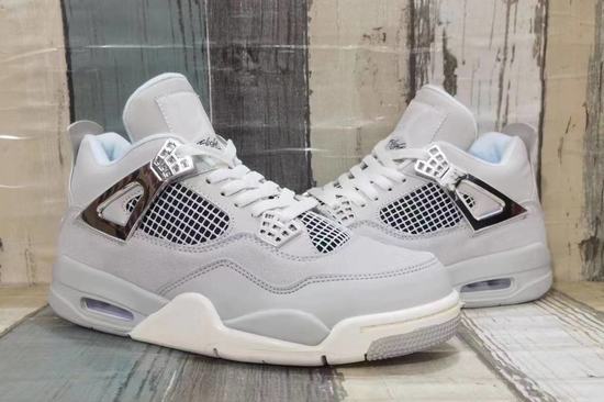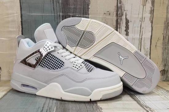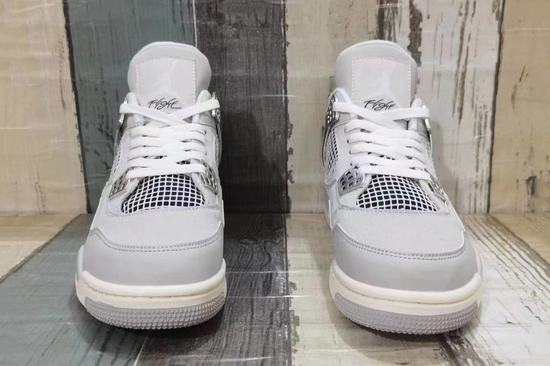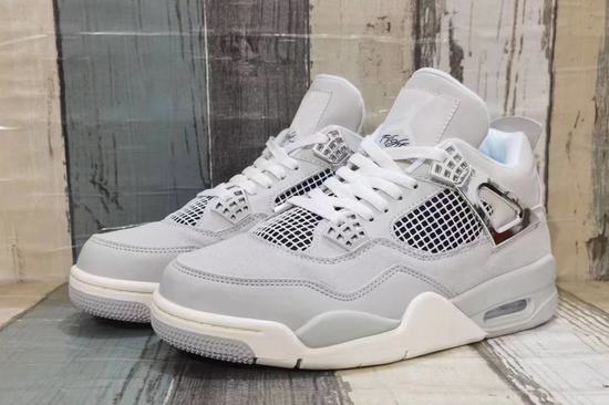 Air Jordan 4 Frozen Moments A pure and charming sports shoes like snow and ice, with its unique gray color in the footwear world blooming dazzling light. Pure white and calm gray interweave, creating a cool and elegant atmosphere. Gives a fresh, simple aesthetic feeling. Grey, like shadows in the snow, adds layers and dimensions to the whole.