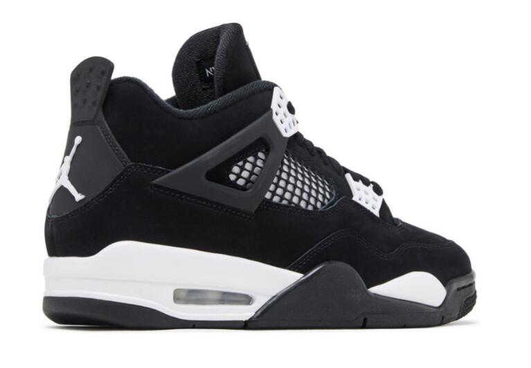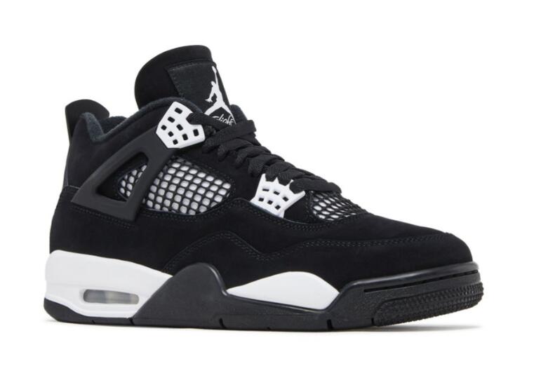 Air Jordan 4 "White Thunder" follows the traditional "Thunder" series design concept, but transforms the original light yellow into fresh white, forming a unique "white Thunder" suit. The body is made of all-black frosted suede with the tongue, plastic parts and mesh, while the midsole, the peephole on the tongue and the bottom of the mesh are the opposite shade of white.