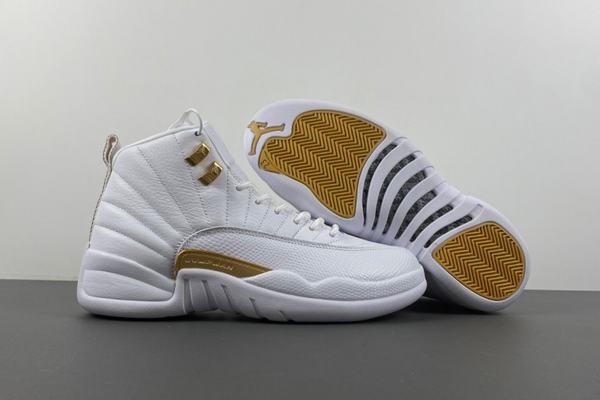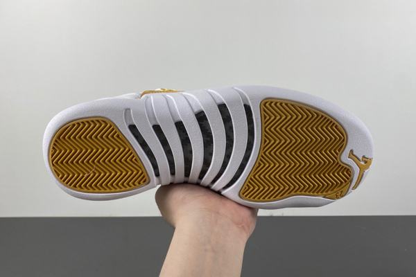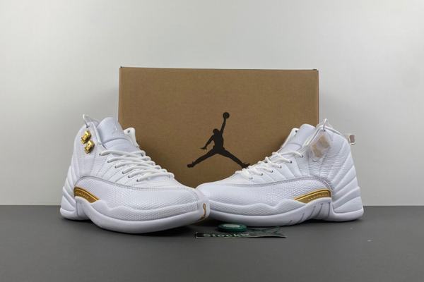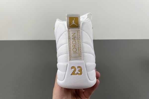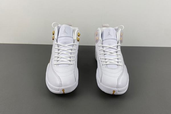 Air Jordan 12 Phantom overall shape is quite clean and crisp, the use of pure white shoes with dazzling gold embellishment, especially the metal shoelace buckle part, became the finishing touch. Finally, the white middle sole and outsole complete the overall design. With a white leather upper and striking metallic gold trim, the Phantom looks timeless appeal and stability with its Jumpman logo and reinforced carbon fiber panels. The AJ12 exudes elegance with phantom, metallic gold and white tones.