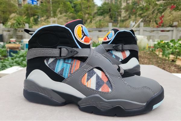Air Jordan 8 Grey Black Blue Orange The go across band layout on the side of the footwear is a trademark aspect of the Air Jordan 8, which not just boosts the security of the footwear, yet additionally creates an one-of-a-kind design aesthetically. The pull-tab style on the top is special, which is convenient for using and removing, and additionally ends up being an aesthetic emphasize. The Air Jordan logo design on the tongue is captivating yet not over the top, highlighting the brand name identification of this set of footwear.