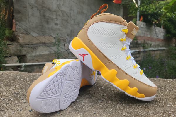 The sole of the Air Jordan 9 White Brown Yellow embraces a timeless layout with great hold and use resistance. The white midsole mirrors the top, and the structure layout of the outsole is not just stunning, yet additionally offers steady assistance and anti-slip efficiency. There are additionally some patterns and messages published on the single, and these information additionally cheap jordans online improve the layout undertone of this set of footwear.