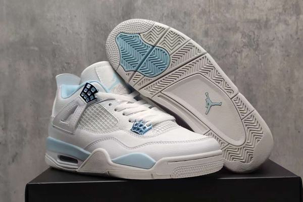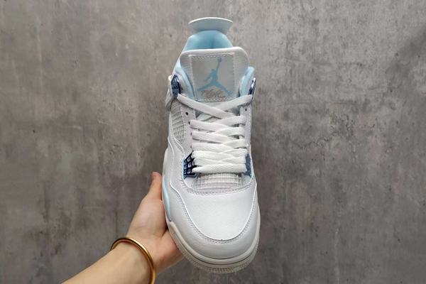 Retro Air Jordan 4 Light Weight Aluminum White Blue is a tennis shoe with a really trendy and traditional beauty. It attracts attention amongst numerous footwear with its one-of-a-kind white and blue color design and elegant layout.