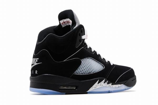 The black leather upper of this shoe gives a sedate and classic feel, while the white LACES and midsole create a sharp contrast that makes the shoe even more eye-catching. The whole shoe design restores the basic outline of "Black Metallic" color matching, including frosted leather upper, sharktooth ink midsole, translucent ice blue outsole, etc. The more obvious change is that the shoelaces are replaced with white. The fifth reproduction shows its high popularity. The biggest difference with the OG version is that, first, the edge of the shoe body is outlined with 3M reflection, and the line outline of AJ5 can be reflected in the low light environment.