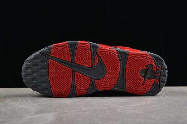 The Air More Uptempo Black Red Men’s is a distinguished and iconic basketball shoe that has carved out a notable niche in the basketball footwear landscape, revered by both hoopsters and style-conscious consumers. Its singular design and timeless color scheme have made it a go-to choice in the basketball shoe category. This sneaker showcases a bold black and red colorway, with red taking precedence, symbolizing a fiery essence, packed with enthusiasm and liveliness. It’s prominently featured on the upper’s main section, demanding attention and delivering a striking visual effect. The black, used as an accent color, is applied to the shoe’s structural elements and details, such as the upper and the sole’s border, creating a sharp contrast that enhances the shoe’s depth and stability.