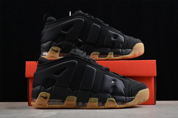The Air More Uptempo Black Wheat features a predominantly black color scheme, with the wheat hue on the sole adding a vintage touch to its overall silhouette. The contrast between the black’s serenity and the wheat’s warmth creates a striking visual impact, which not only captures the essence of basketball’s energy but also exudes a retro style, reminiscent of a bygone era of the sport.