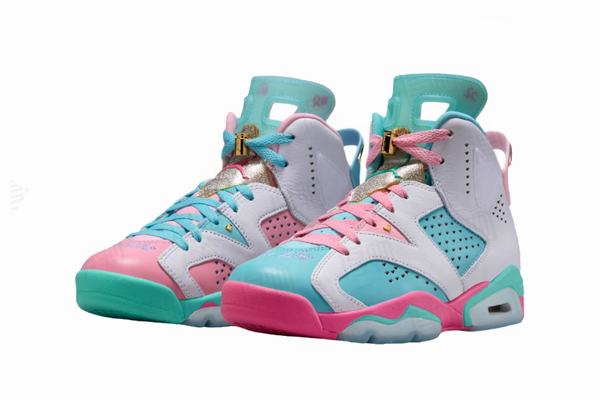 Air Jordan 6 "Doernbecher" is the highlight of the 2024 series. The overall design features heart-shaped perforations that symbolize warmth and care. Customizable Velcro offers the wearer freedom of choice, making each shoe unique. The shoes also feature bold metallic gold trim. The color scheme is a blend of sail colors, pink and green tones that are soft yet bold.