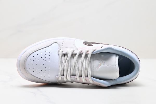 The Retro Air Jordan 1 Low “Pink Quartz” is a timeless shoe that expertly fuses a touch of sweetness with a fashionable edge. Its design is both ingenious and unique. The upper is primarily made of pure white leather, establishing a clean and airy feel. This is accented by cherry blossom pink through-core, top-layer lychee leather, adding a soft and romantic touch that gives the shoe a dreamy quality. The shoe’s side panels feature the legendary Swoosh in a dark grey, along with details like the LACES, creating a striking visual contrast with the pink and white main colors. This clever design choice adds depth to the overall look, making the shoe both sweet and stylish. The “Pink Quartz” colorway is a beloved staple in the Air Jordan 1 family, perfectly aligning with the youthful feminine desire for both romance and fashion-forwardness.