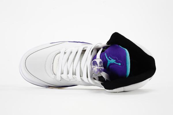 The Air Jordan 5 “Grape” draws its design inspiration from Jordan’s speed and agility during games. The upper boasts a sleek, aerodynamic design, conveying a sense of dynamism and power. The primary material is white leather, complemented by vibrant grape purple accents, creating a strong visual impact. This bold color scheme was quite cutting-edge at the time and set a new standard for future athletic shoe designs.