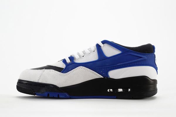 The shoe’s visual impact is undeniable. Featuring a white suede and mesh upper, it establishes a clean and minimalist aesthetic. The black leather toe cap, along with the inner collar lining and midsole, contribute to a sense of stability and elegance. The striking “deep Royal blue” accents provide the perfect contrast, featured on the shoe’s side cage-like structure and the main portion of the outsole, creating a bold and fashionable statement. The Jumpman logo on the tongue and sole is subtle yet refined, while the Nike Air logo on the heel is understated, reinforcing the brand’s identity.