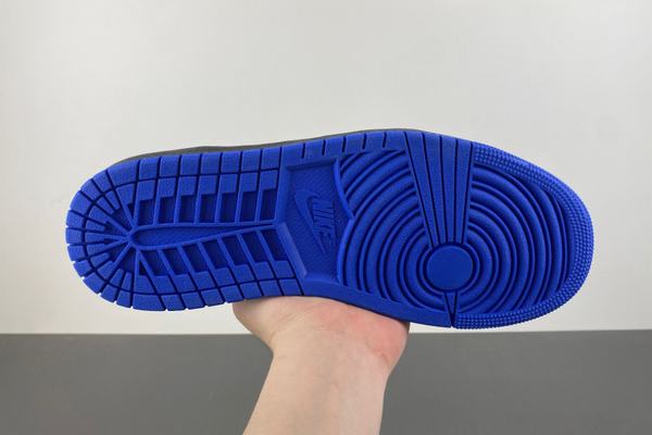 The sole of the Air Jordan 1 Low Black Royal Blue is crafted from high-quality rubber, ensuring reliable traction. It guarantees stable footing whether you're walking casually or engaging in light physical activity. The insole design prioritizes comfort, offering adequate support and cushioning for the feet, thereby mitigating the fatigue associated with extended periods of walking.