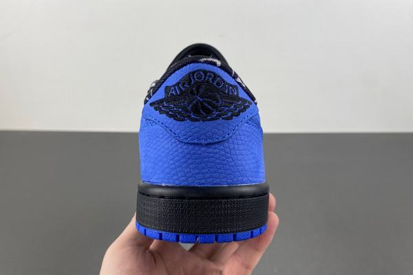 In terms of finer points, the Air Jordan 1 Low Black Royal Blue showcases meticulous craftsmanship. Iconic elements such as the logo on the tongue and the wing logo on the heel are all present. These hallmark designs serve not only as brand identifiers but also as a homage to the enduring legacy of the Air Jordan 1. The laces, too, adopt a design that harmonizes with the overall color scheme, further refining the shoe's cohesive look.