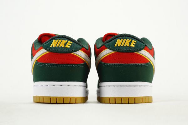 The Dunk SB Seattle Supersonics faithfully adapts the classic team color scheme of the Seattle Supersonics (the lineage of the present-day Oklahoma City Thunder). The shoe’s upper is dominated by shades of dark green and red. This pairing is visually arresting, effectively transporting the viewer back to the Supersonics’ heyday. Deep green suede covers extensive areas such as the toe cap, upper sections, and heel counter, presenting a refined texture and multi-dimensional look that adds dunk shoes for cheap gravitas to the design. Red accents are strategically placed on the shoe’s medial and lateral side panels, as well as the tongue, creating a sharp contrast with the green base that brightens the entire look and infuses it with vitality. A clean white Swoosh is prominently featured on the side, functioning as both a decorative element and a key brand identifier. Yellow detailing on the laces, lining, and midsole introduces an additional pop of color, enriching the shoe’s overall visual tapestry.
