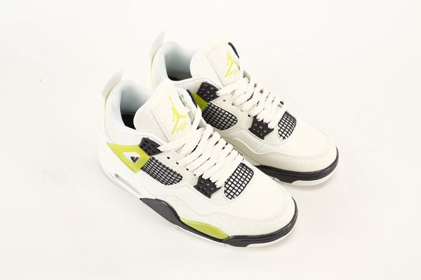 This Air Jordan 4 iteration utilizes a crisp white base to set the stage, allowing the black accents to pop effectively. The lemon yellow highlights act as the pièce de résistance, injecting a significant dose of energy and dynamism into the overall aesthetic.