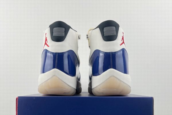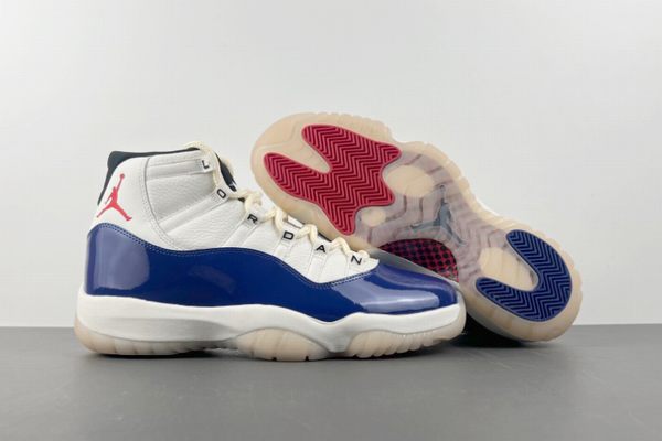 Crafted from premium white leather and gleaming blue patent leather, the Air Jordan 11 Rare Air boasts a sophisticated aesthetic. The white leather portion offers a refined texture, establishing a clean and elegant foundation. The shimmering blue patent leather evokes the depths of the ocean, lending an air of luxury and modernity. The interplay of these materials not only creates a bold visual contrast but also imparts a distinct sense of dimension.