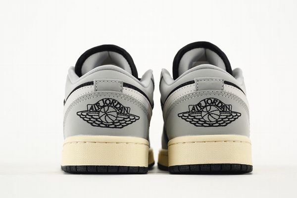 Equipped with a moderately cushioned midsole, the Air Jordan 1 Low Black Grey Beige offers reliable shock absorption for everyday wear, helping to minimize foot fatigue. The leather upper not only enhances the shoe’s visual appeal but also provides structured support, ensuring a secure and comfortable fit. This combination makes for a pleasant experience during daily walks or light physical activity.
