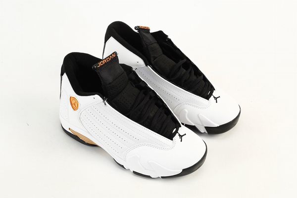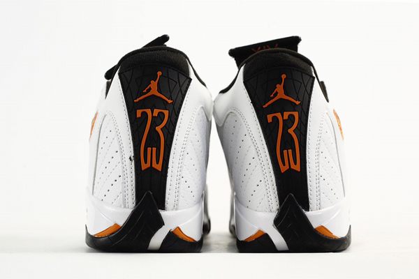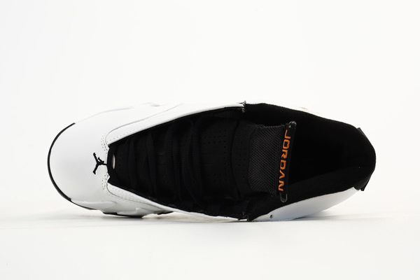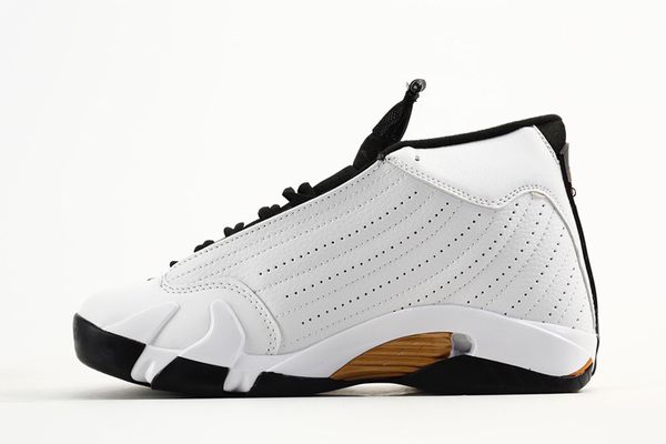 The Air Jordan 14 White Black Copper is primarily dressed in a simple white tone, accented with black and copper details. It presents a contemporary look that merges sophistication with dynamism, establishing itself as a timeless piece within the Air Jordan lineage that balances emblematic design and everyday usability.