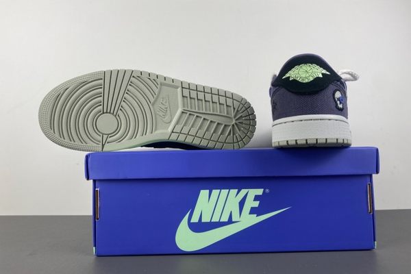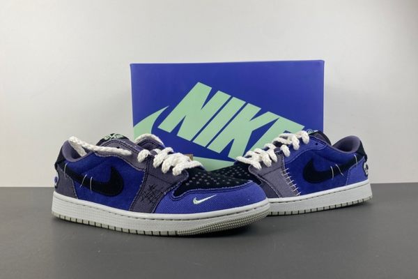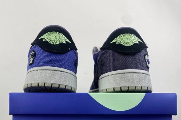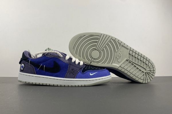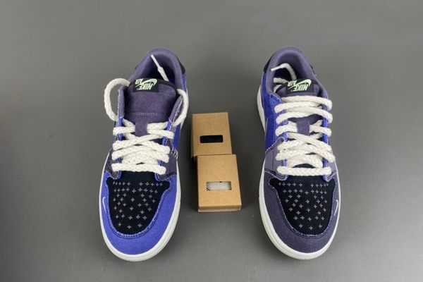 The Air Jordan 1 Low OG Voodoo Alternate is dominated by a deep and rich blue color. The upper of the shoe is made of a combination of materials with rich textures, including both fine and soft suede and tough and wear-resistant canvas. The collision and integration of different materials not only enrich the visual effect but also add a sense of layering to the shoes. The blue upper is paired with black detail decorations. For instance, the iconic Swoosh logo on the side of the shoe is presented in black, resembling a black silhouette in the night sky. The sharp contrast makes the logo more eye-catching and also enhances the three-dimensional effect of the overall design.