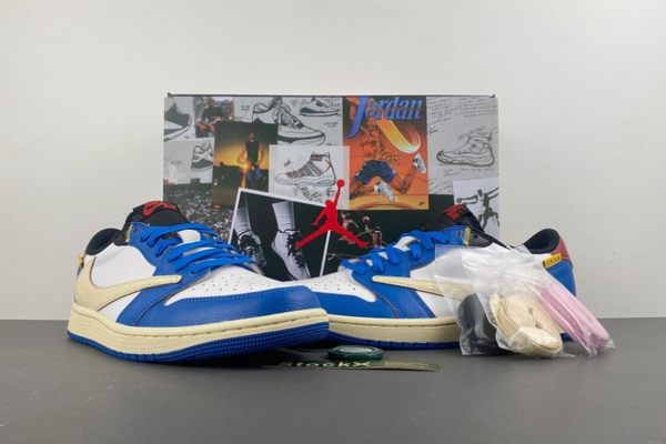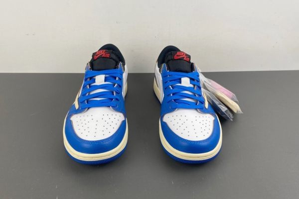 Travis Scott x Air Jordan 1 Low White Blue Red deeply integrates street culture, music culture and basketball culture. Travis Scott, as a pioneer in the fashion world, his creativity and style have had a profound influence. The Air Jordan 1 series is a classic in the history of basketball shoes, carrying the basketball dreams and memories of countless people. This collaborative shoe model, for Travis Scott's fans, is a pursuit and tribute to their idol's style. For fans of Air Jordan, it is a classic and innovative interpretation. Whether paired with casual jeans, cargo pants or fashionable sportswear, it can easily create a unique trendy style, become the focus on the streets and alleys, and continue the legendary story belonging to Travis Scott and Air Jordan 1.
