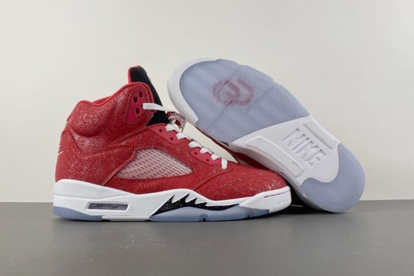 The upper of the Air Jordan 5 Style Burst Red shoe adopts a material with a unique texture, presenting an effect similar to a burst texture on the surface. It not only adds a unique visual layering but also endows the shoe with a sense of nonconformity and individuality.