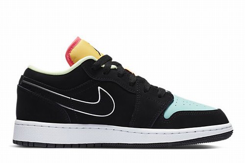 This pair of shoes adopts a color scheme with white as the main tone. The main body of the upper is pure white, covering the forefoot, midsole and part of the inner lining, creating a fresh and simple atmosphere. The most eye-catching feature is the bright green Swoosh logo, located on the side of the shoe. Its size is slightly larger than that of the regular AJ1 Swoosh, creating a strong contrast with the white upper and a powerful visual impact. There are two different designs at the heel: there is a circular green embroidered logo on the left heel, and the internal pattern is similar to a cartoon character; The words “AIR JORDAN” and the flying wing logo are printed on the right heel. The font is green, consistent with the color of Swoosh, strengthening the brand association. The midsole is made of light off-white rubber, which is soft and elastic with a slightly curved edge, conforming to the low-top design of the Air Jordan 1 Low.