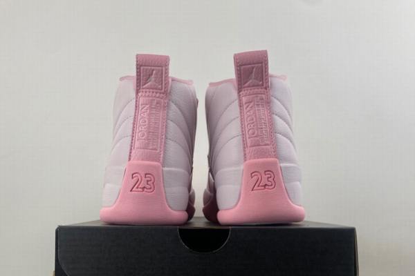 It not only carries forward the Air Jordan 12’s iconic high-top profile but also enhances the shoe’s tender atmosphere through its soft, low-saturation pink hue. The side stitching is rendered in a concealed, same-color manner, softening structural boundaries and creating a more streamlined, unified overall look. The pink buckle details on the upper retain the series’ signature tactical boot design cues while complementing the shoe’s color scheme, allowing sweet touches to blend naturally into the classic sneaker shape.The pink Jumpman logo on the shoe’s side subtly echoes the theme, and the pink-white patchwork outsole pattern guarantees solid grip while maintaining the shoe’s fresh, sweet tone.