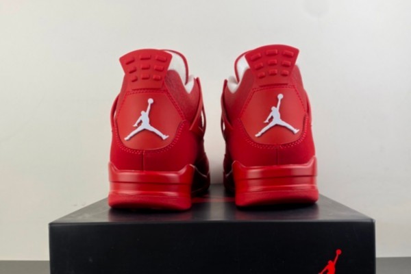 This shoe is covered with delicate red suede on the main part of the upper, and the soft绒面 texture shines with rich texture under the light, continuing the iconic high-top combat boot silhouette of Air Jordan 4, while laying out a strong visual tension with the all-red tone; the breathable mesh on the side of the shoe and the TPU support piece adopt the same color design, ensuring air circulation while allowing the crack texture and suede material to naturally correspond, enhancing the layering and support of the upper.