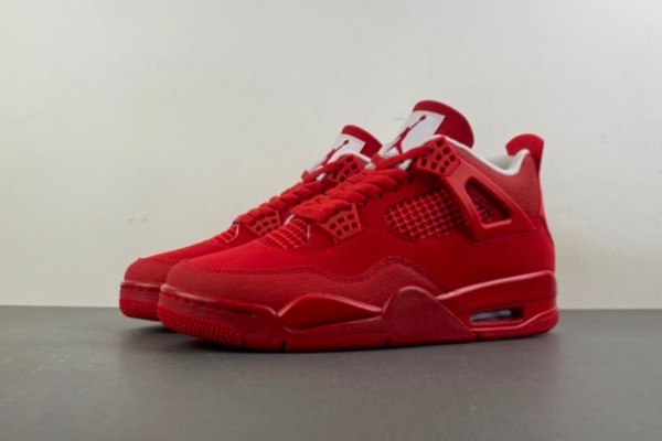The crack details on the upper resemble the texture of cooled lava, forming a unique visual contrast on the red suede, neither disrupting the overall intense atmosphere nor allowing trend enthusiasts to quickly identify their exclusive identity; the visible Air Sole air cushion on the midsole adopts the same color semi-transparent design, serving as both the performance identifier of Air Jordan 4 and reinforcing the "bursting" theme with the intense color; the flying man logo on the heel and the white lining on the shoe opening add a touch of neatness in the all-red tone, becoming a dual emotional anchor for Jordan fans and hardcore fashion enthusiasts.